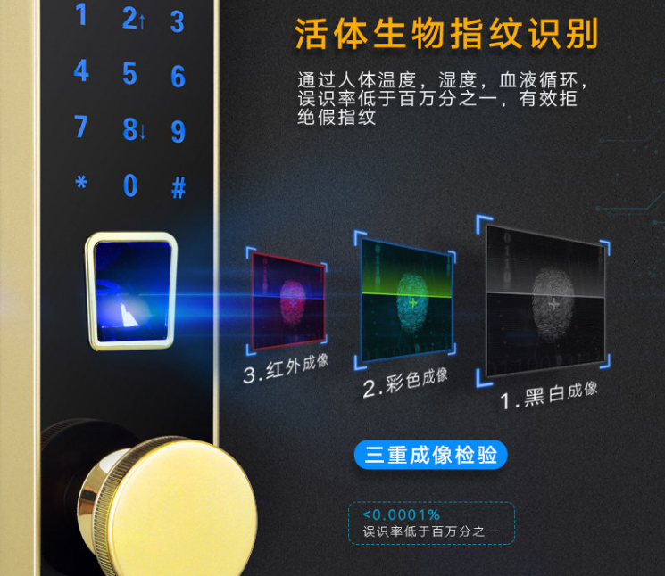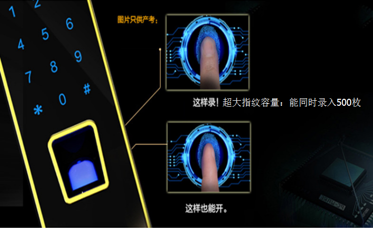 这时候你一定会问,500个指纹,不会出现错乱吗?不会反应很慢吗?真的安全吗?答案是,绝对安全。德尔纹智能锁采用全新活体生物指纹识别技术,0.1秒的识别速度,通过人体温度、湿度、血液,误识率低于百万分之一,有效拒绝假指纹。